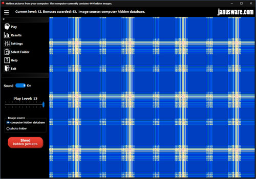 In the free version, the player can shred and erase files with hidden pictures at the last level of the game only. In the full version, the player can destroy files with hidden pictures at any play level.